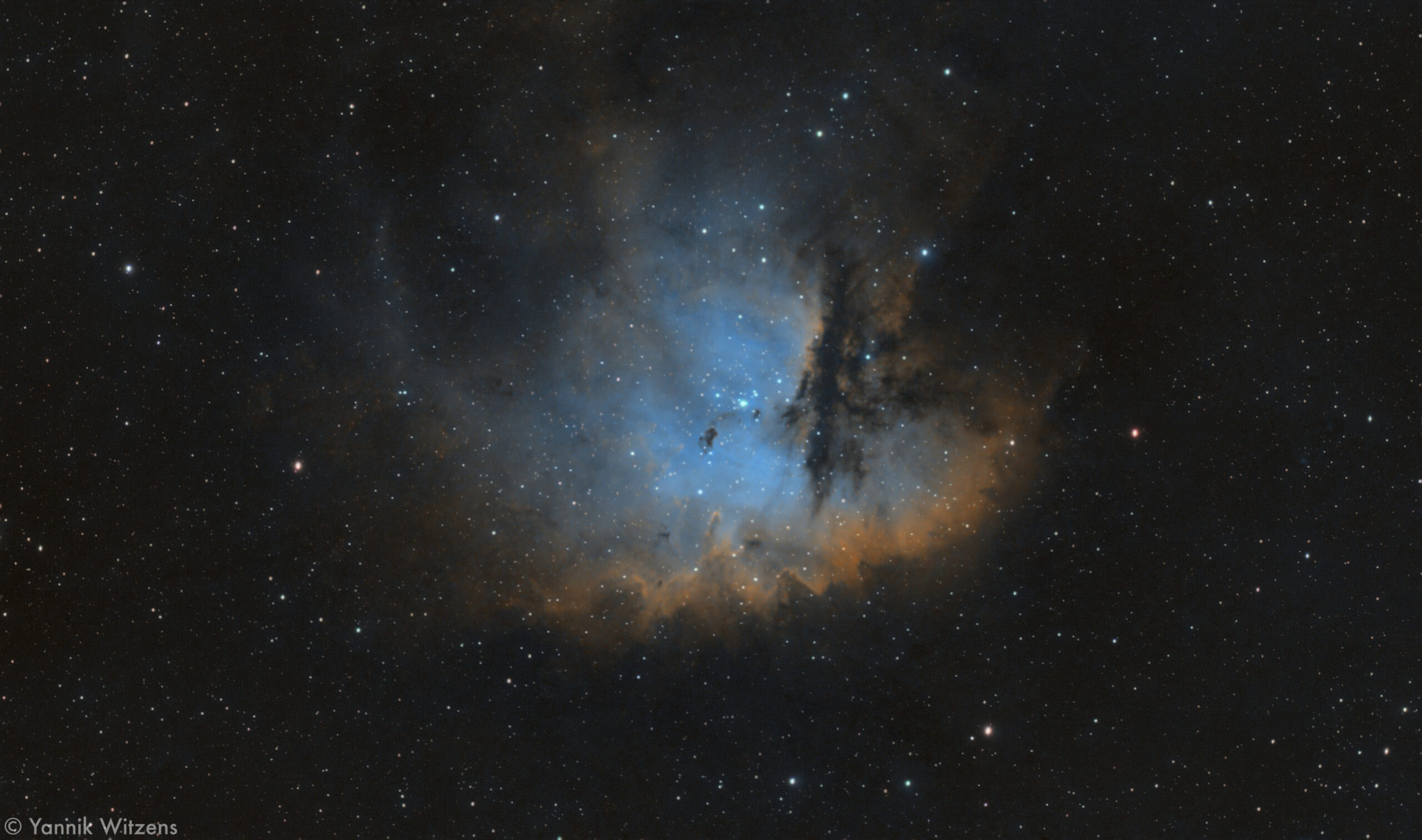 Ein Emissionsnebel, der seinen Namen seiner Ähnlichkeit mit der bekannten Videospielfigur verdankt; hier in der Hubble-Palette dargestellt.